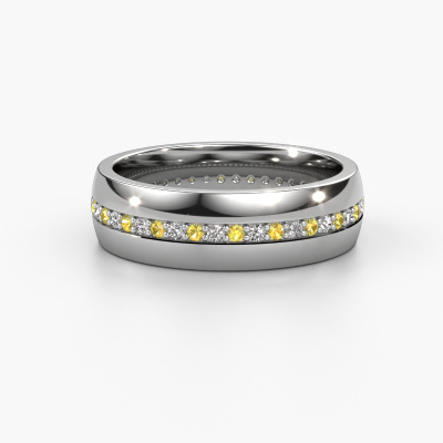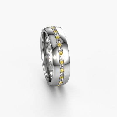 Did you know the Eternity weddings ring not only looks good, but that this weddings ring also has its own beautiful symbolical meaning? The Eternity weddings ring, with perfectly aligned smaller sized gemstones, represents your eternal love. Because the ring is pave set with gemstones, it appears to have no beginning nor end. Beautiful, wouldn't you agree? This wide WH0103L26BP ladies weddings ring has a width of ±0.24 in and is set with yellow sapphire 1.3 mm. After designing your ring, our jewel designer will start working on it. He will make a graphic 3D design of your weddings ring. This can also be used to make a dummy ring. Simply order a dummy ring and see for yourself how your ring will turn out. Subsequently, our expert goldsmith will create your ring in our own artisan studio. We use eco-friendly gold, so you get a ring, we are proud of, which looks good inside and out. You can also send us your own gold. Because we create your ring by hand, we can use your own gold. Our goal is to create an exquisite sparkling weddings ring just as envisioned it!Do you have specific wishes? Like a shiny ring, or a matte one? A wider band, or a smaller one? The possibilities of this weddings ring are endless. Be sure to contact our designers to adjust your ring to your personal taste. Did you see a ring somewhere, or do you have some special ideas of your own? Then don't hesitate to contact our designers and discuss your ideas for your own set of beautiful wedding rings. We are up for the challenge of creating the ring exactly the way you want it!After receiving your order, our goldsmiths will start the creative process of making your wedding rings. We don't keep stock. This is advantageous because these costs will not be passed on to you. Therefore, our quality wedding rings are always priced 30 percent lower than those of other jewellers.To make it easier for you, we offer a 30 day return policy. Check our terms and conditions.