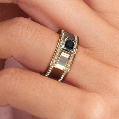 A truly stylish 14 Carat exclusive wedding ring! This exquisite ladies wedding ring, as shown above, is set with princess black diamond. Our goldsmiths make each gold wedding ring by hand in our own artisan studio and because of that, the black diamonds are set with the utmost precision. This causes light to reflect evenly from every angle of the black diamond. The width of this exclusive WH2121L wedding ring is ±0.31 in and the finish is shiny. Choosing a wedding ring is not done on a whim. In the end, you want a ring that completely matches your style and preferences. A reflection of your love and relationship. A ring to last a lifetime. A symbol of all that unites you. Creating your dream ring is what gets us excited. This is artfully done by hand in our own crafting studio, so we can create your ring to perfection. The most rewarding job in the world!Do you have specific wishes? Like a shiny ring, or a matte one? A wider band, or a smaller one? The possibilities of this wedding ring are endless. Be sure to contact our designers to adjust your ring to your personal taste. Did you see a ring somewhere, or do you have some special ideas of your own? Then don't hesitate to contact our designers and discuss your ideas for your own set of beautiful wedding rings. We are up for the challenge of creating the ring exactly the way you want it!After receiving your order, our goldsmiths will start the creative process of making your wedding rings in our own crafting studio. We don't keep stock. This is advantageous because these costs will not be passed on to you. Therefore, we can offer the finest quality jewellery at exceptionally low prices.To make it easier for you, we offer a 30 day return policy. Check our terms and conditions.