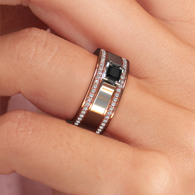 A truly stylish 14 Carat exclusive wedding ring! This exquisite ladies wedding ring, as shown above, is set with princess black diamond. Our goldsmiths make each rose gold wedding ring by hand in our own artisan studio and because of that, the black diamonds are set with the utmost precision. This causes light to reflect evenly from every angle of the black diamond. The width of this exclusive WH2121L wedding ring is ±0.31 in and the finish is shiny. Choosing a wedding ring is not done on a whim. In the end, you want a ring that completely matches your style and preferences. A reflection of your love and relationship. A ring to last a lifetime. A symbol of all that unites you. Creating your dream ring is what gets us excited. This is artfully done by hand in our own crafting studio, so we can create your ring to perfection. The most rewarding job in the world!Do you have specific wishes? Like a shiny ring, or a matte one? A wider band, or a smaller one? The possibilities of this wedding ring are endless. Be sure to contact our designers to adjust your ring to your personal taste. Did you see a ring somewhere, or do you have some special ideas of your own? Then don't hesitate to contact our designers and discuss your ideas for your own set of beautiful wedding rings. We are up for the challenge of creating the ring exactly the way you want it!After receiving your order, our goldsmiths will start the creative process of making your wedding rings in our own crafting studio. We don't keep stock. This is advantageous because these costs will not be passed on to you. Therefore, we can offer the finest quality jewellery at exceptionally low prices.To make it easier for you, we offer a 30 day return policy. Check our terms and conditions.