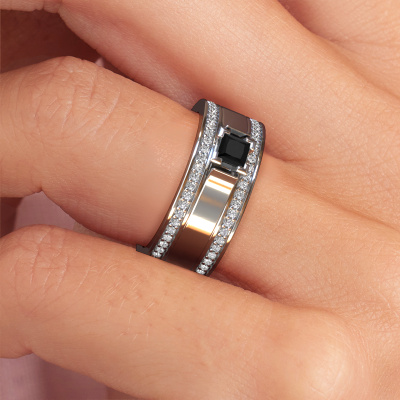 A truly stylish 14 Carat exclusive wedding ring! This exquisite ladies wedding ring, as shown above, is set with princess black diamond. Our goldsmiths make each white gold wedding ring by hand in our own artisan studio and because of that, the black diamonds are set with the utmost precision. This causes light to reflect evenly from every angle of the black diamond. The width of this exclusive WH2121L wedding ring is ±0.31 in and the finish is shiny. Choosing a wedding ring is not done on a whim. In the end, you want a ring that completely matches your style and preferences. A reflection of your love and relationship. A ring to last a lifetime. A symbol of all that unites you. Creating your dream ring is what gets us excited. This is artfully done by hand in our own crafting studio, so we can create your ring to perfection. The most rewarding job in the world!Do you have specific wishes? Like a shiny ring, or a matte one? A wider band, or a smaller one? The possibilities of this wedding ring are endless. Be sure to contact our designers to adjust your ring to your personal taste. Did you see a ring somewhere, or do you have some special ideas of your own? Then don't hesitate to contact our designers and discuss your ideas for your own set of beautiful wedding rings. We are up for the challenge of creating the ring exactly the way you want it!After receiving your order, our goldsmiths will start the creative process of making your wedding rings in our own crafting studio. We don't keep stock. This is advantageous because these costs will not be passed on to you. Therefore, we can offer the finest quality jewellery at exceptionally low prices.To make it easier for you, we offer a 30 day return policy. Check our terms and conditions.