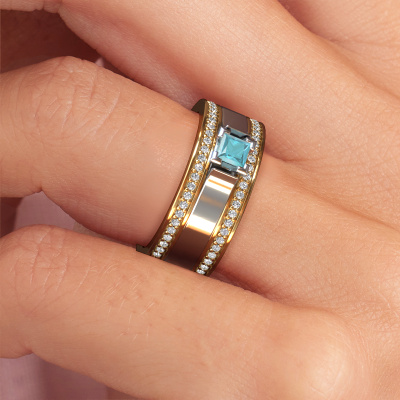 A truly stylish 14 Carat exclusive wedding ring! This exquisite ladies wedding ring, as shown above, is set with princess blue topaz. Our goldsmiths make each gold wedding ring by hand in our own artisan studio and because of that, the blue topaz are set with the utmost precision. This causes light to reflect evenly from every angle of the blue topaz. The width of this exclusive WH2121L wedding ring is ±0.31 in and the finish is shiny. Choosing a wedding ring is not done on a whim. In the end, you want a ring that completely matches your style and preferences. A reflection of your love and relationship. A ring to last a lifetime. A symbol of all that unites you. Creating your dream ring is what gets us excited. This is artfully done by hand in our own crafting studio, so we can create your ring to perfection. The most rewarding job in the world!Do you have specific wishes? Like a shiny ring, or a matte one? A wider band, or a smaller one? The possibilities of this wedding ring are endless. Be sure to contact our designers to adjust your ring to your personal taste. Did you see a ring somewhere, or do you have some special ideas of your own? Then don't hesitate to contact our designers and discuss your ideas for your own set of beautiful wedding rings. We are up for the challenge of creating the ring exactly the way you want it!After receiving your order, our goldsmiths will start the creative process of making your wedding rings in our own crafting studio. We don't keep stock. This is advantageous because these costs will not be passed on to you. Therefore, we can offer the finest quality jewellery at exceptionally low prices.To make it easier for you, we offer a 30 day return policy. Check our terms and conditions.