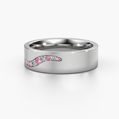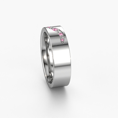 A truly stylish fashionable wedding ring! This exquisite ladies wedding ring, as shown above, is set with round pink sapphire. Our goldsmiths make each platinum wedding ring by hand in our own artisan studio and because of that, the pink sapphire are set with the utmost precision. This causes light to reflect evenly from every angle of the pink sapphire. The width of this fashionable WH2053L16BP wedding ring is ±0.24 in and the finish is shiny. Simply customize your gemstones and colours with our online tool. Our jewel designers will make a 3D drawing of your design, so you can see the result. Our goldsmiths will subsequently make your wedding ring by hand, according ancient craftsmanship. Our goal is to make the wedding ring you have in mind. A unique wedding ring to match your style completely!By the way, you can be inspired by this wedding ring and have it further adjusted to your taste. Do you prefer a smaller band or a wider one? Do you prefer a shiny ring or a matte one? Anything is possible. Also, if you have an idea of your own for extraordinary wedding rings, or if you have seen a beautiful set somewhere else that you really like and would like to have adjusted to your personal taste: no problem! don't hesitate to contact us. Our designers will gladly discuss your possibilities with you!Because we design and deliver our own wedding rings, we can offer you wedding rings at a price you won't find anywhere else. A ring is made to order, which helps prevent excess supplies, so we can make you a great price offer.To make it easier for you, we offer a 30 day return policy. Check our terms and conditions.