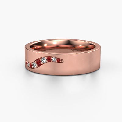 A truly stylish 14 Carat fashionable wedding ring! This exquisite ladies wedding ring, as shown above, is set with round ruby. Our goldsmiths make each rose gold wedding ring by hand in our own artisan studio and because of that, the ruby are set with the utmost precision. This causes light to reflect evenly from every angle of the ruby. The width of this fashionable WH2053L16BP wedding ring is ±0.24 in and the finish is shiny. Simply customize your gemstones and colours with our online tool. Our jewel designers will make a 3D drawing of your design, so you can see the result. Our goldsmiths will subsequently make your wedding ring by hand, according ancient craftsmanship. Our goal is to make the wedding ring you have in mind. A unique wedding ring to match your style completely!By the way, you can be inspired by this wedding ring and have it further adjusted to your taste. Do you prefer a smaller band or a wider one? Do you prefer a shiny ring or a matte one? Anything is possible. Also, if you have an idea of your own for extraordinary wedding rings, or if you have seen a beautiful set somewhere else that you really like and would like to have adjusted to your personal taste: no problem! don't hesitate to contact us. Our designers will gladly discuss your possibilities with you!Because we design and deliver our own wedding rings, we can offer you wedding rings at a price you won't find anywhere else. A ring is made to order, which helps prevent excess supplies, so we can make you a great price offer.To make it easier for you, we offer a 30 day return policy. Check our terms and conditions.
