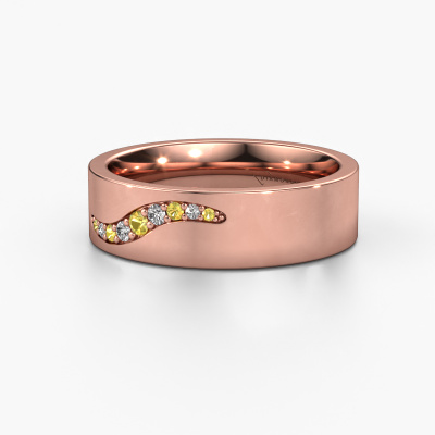 A truly stylish 14 Carat fashionable wedding ring! This exquisite ladies wedding ring, as shown above, is set with round yellow sapphire. Our goldsmiths make each rose gold wedding ring by hand in our own artisan studio and because of that, the yellow sapphire are set with the utmost precision. This causes light to reflect evenly from every angle of the yellow sapphire. The width of this fashionable WH2053L16BP wedding ring is ±0.24 in and the finish is shiny. Simply customize your gemstones and colours with our online tool. Our jewel designers will make a 3D drawing of your design, so you can see the result. Our goldsmiths will subsequently make your wedding ring by hand, according ancient craftsmanship. Our goal is to make the wedding ring you have in mind. A unique wedding ring to match your style completely!By the way, you can be inspired by this wedding ring and have it further adjusted to your taste. Do you prefer a smaller band or a wider one? Do you prefer a shiny ring or a matte one? Anything is possible. Also, if you have an idea of your own for extraordinary wedding rings, or if you have seen a beautiful set somewhere else that you really like and would like to have adjusted to your personal taste: no problem! don't hesitate to contact us. Our designers will gladly discuss your possibilities with you!Because we design and deliver our own wedding rings, we can offer you wedding rings at a price you won't find anywhere else. A ring is made to order, which helps prevent excess supplies, so we can make you a great price offer.To make it easier for you, we offer a 30 day return policy. Check our terms and conditions.