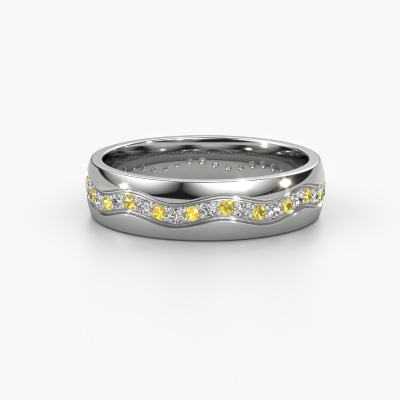 If you are looking for an exclusive, exclusive wedding ring with an exquisite look, this ring is perfect for you. Because it can be customized to your style, this wedding ring can be turned into a unique, exclusive piece of jewellery. This exclusive ladies wedding ring is a perfect combination of ancient craftsmanship, love, passion and the latest modern techniques. This exclusive WH0803L25AP wedding ring is set with yellow sapphire 1.3 mm, is ±0.20 in wide and has a shiny finish. You can choose the combination of precious metals of your preference in our online tool. Anything goes! It is wise to browse through the characteristics of each different precious metal. For example, gold and silver are softer metals. Carat is determined by the amount of added extra metals. If the goldsmith doesn't add a lot, carat is higher and the wedding ring will be softer. If he adds more metals, the jewel has a lower amount of carat. A softer precious metal can still be used for your exclusive wedding ring! If you prefer a precious metal which will last a lifetime, we recommend platinum. This is the most solid and durable metal our goldsmith uses.By the way, you can be inspired by this wedding ring and have it further adjusted to your taste. Do you prefer a smaller band or a wider one? Do you prefer a shiny ring or a matte one? Anything is possible. Also, if you have an idea of your own for extraordinary wedding rings, or if you have seen a beautiful set somewhere else that you really like and would like to have adjusted to your personal taste: no problem! don't hesitate to contact us. Our designers will gladly discuss your possibilities with you!By combining our modern techniques with ancient crafting, we can design and customize the finest quality jewels with the utmost care for you at the best price. Our wedding rings are always priced 30% lower than those of other jewellers. We make wedding rings to order so we don't have to maintain a large stock.To make it easier for you, we offer a 30 day return policy. Check our terms and conditions.
