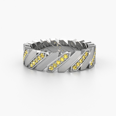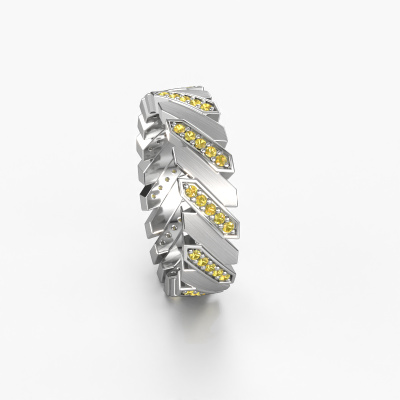 This exclusive ladies weddings ring is a melting pot of ancient craftsmanship, love, passion and the latest techniques. It requires a keen eye, patience and a skilful hand to create this white gold weddings ring to perfection. And perfection is what our goldsmiths strive for! This way, you create an exclusive ring, which is customized to your liking and made by hand in our own artisan studio. This exclusive WH2036L weddings ring is set with yellow sapphire 1.2 mm, is ±0.28 in wide and has a mat/shiny finish. You can choose the combination of precious metals of your preference in our online tool. Anything goes! It is wise to browse through the characteristics of each different precious metal. For example, gold and silver are softer metals. Carat is determined by the amount of added extra metals. If the goldsmith doesn't add a lot, carat is higher and the weddings ring will be softer. If he adds more metals, the jewel has a lower amount of carat. A softer precious metal can still be used for your exclusive weddings ring! If you prefer a precious metal which will last a lifetime, we recommend platinum. This is the most solid and durable metal our goldsmith uses.Do you have specific wishes regarding your weddings ring, but are you having difficulties finding the design on our website? The be sure to contact our designers! For instance, we can make the band smaller or wider. Do you prefer a matte finish? We can do that! Engravings are a great way of personalizing your rings, and applicable on most designs. Or, if you have an idea of your own for your extraordinary wedding rings, contact us! Our designers are up for the challenge of designing the ring of your dreams!By combining our modern techniques with ancient crafting, we can design and customize the finest quality jewels with the utmost care for you at the best price. Our wedding rings are always priced 30% lower than those of other jewellers. We make wedding rings to order so we don't have to maintain a large stock.To make it easier for you, we offer a 30 day return policy. Check our terms and conditions.